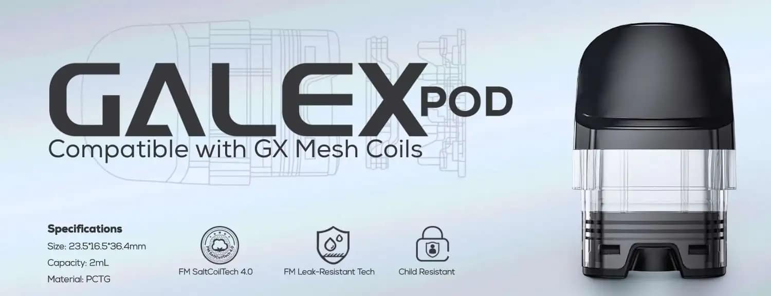 The Freemax Galex pods are designed and constructed with FM Leak-resistant technology, which incorporates a maze chimney system on either side of the pod to extend the path of any excess e-liquid which may be flowing through the chimney, preventing leaking issues.
