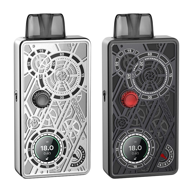 Innokin Klypse Mecha Pod Kit is certainly a vape kit of beauty with its intrinsic design and shape. The Innokin Klypse Mecha Pod System, featuring a 900mAh battery, 6-18W output, and a 2ml pod with integrated coil to deliver outstanding flavour. Constructed from durable zinc-alloy, the Klypse Mecha is inspired by the inner workings of mechanical watches and delivers a small and portable form factor that will perform as well as it looks.