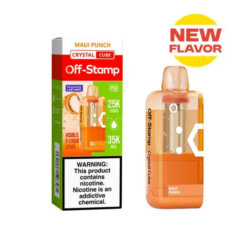 The Off-Stamp X Cube Crystal Cube 35K redefines disposable vaping with its innovative full kit design. Featuring a transparent 19ml pod and a reusable 1000mAh charging device, it delivers up to 35,000 smooth puffs of pure flavor. The pod’s built-in 100mAh battery ensures consistent performance, while the 2.25-inch HD screen provides real-time vaping data with stunning clarity. Enjoy the perfect blend of convenience, style, and technology — a crystal-clear experience every puff of the way.